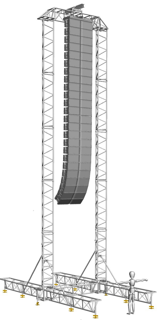 You need two electric chain hoists, with a minimum capacity of 500 kg - 1100 lbs., to set up the GOAL POST system. Once installed, these two chain hoists are immediately ready to lift the largest capacity of loudspeakers. Despite the enormous potential of the GOAL POST, it consists entirely of components that can be lifted by technicians, making it ideal in environments that cannot be reached by forklifts. Optionally, you can order a flight case for all 'not truss' parts.